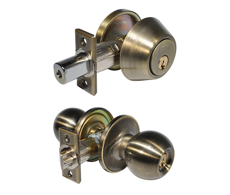 LSDA GRADE 3 SINGLE CYLINDER COMBINATION WITH BALL KNOB KWIKSET ANTIQUE BRASS 068423 – 03B5K KA20